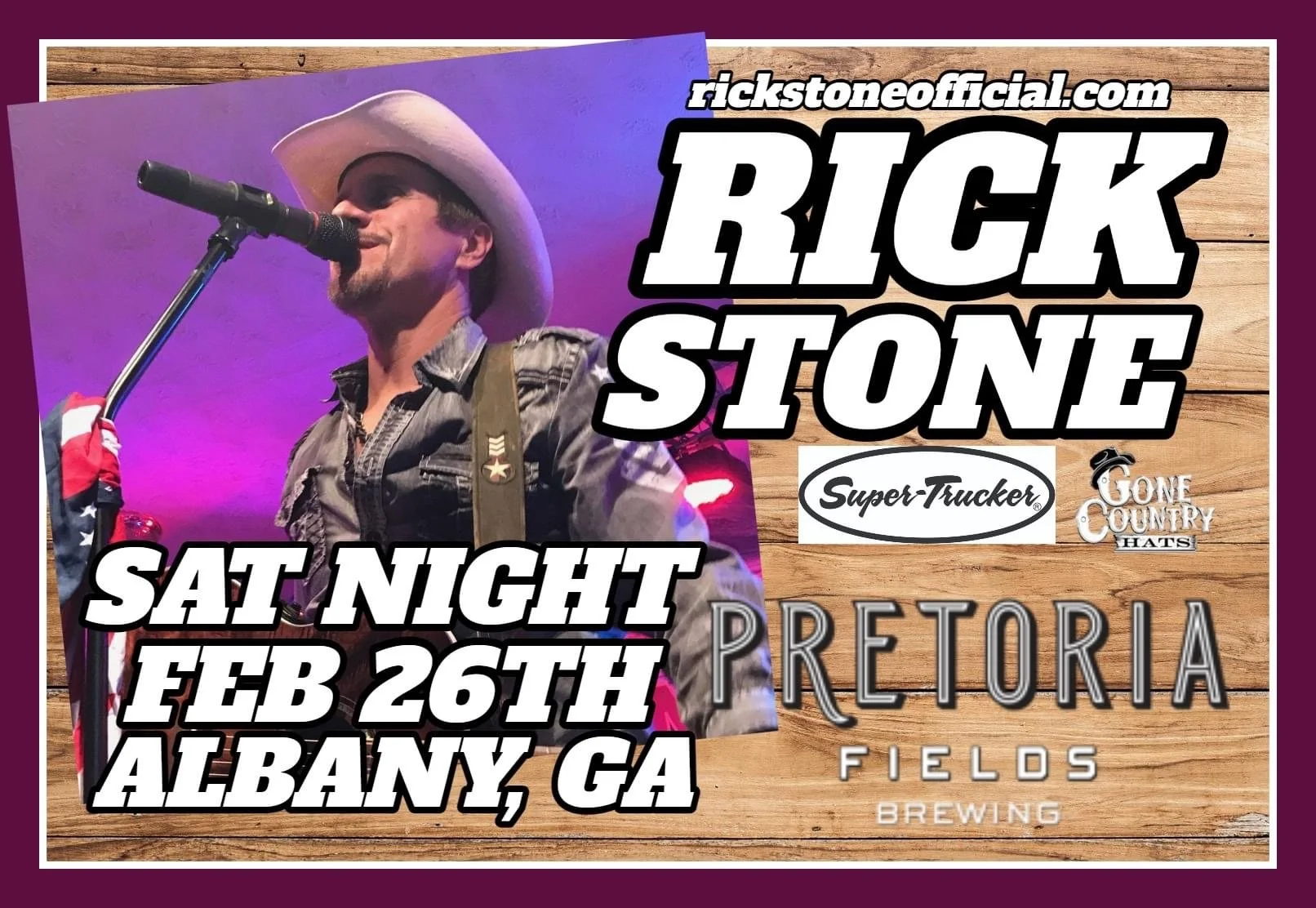 RICK STONE LIVE AT THE BREWERY Saturday, February 26, 2022 7:00 PM 10:00 PM Pretoria Fields Brewery 120 Pine Avenue Albany, GA, 31701 United States (map) Google Calendar ICS Pretoria Fields welcomes country music artist Rick Stone in his first live performance at the brewery! This is a great opportunity to catch this amazing musician, don’t miss it!